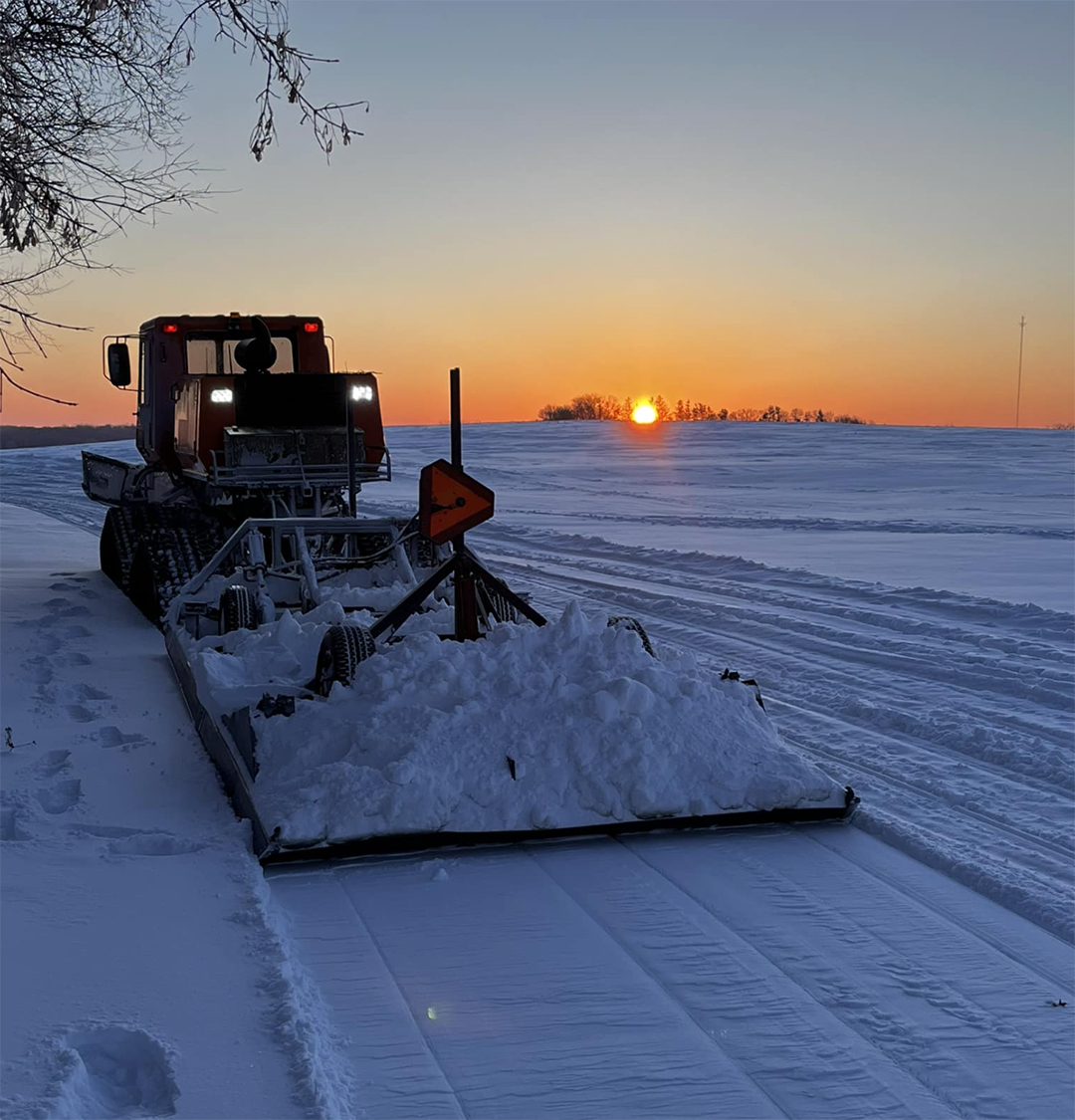 In the early 1970’s, Dee Normand and Bernie Botner had a plan to start a snowmobile club that would serve all of Douglas County. The plan would create a structured trail system and combine the many trails that already existed. This was the beginning of the Douglas Area Trails Association. The first snowmobile trail in Douglas County was known as Inspiration 1, a 19 mile trail between Alexandria and Miltona. By the winter of 1976, this group had built about 160 miles of Grant-In-Aid trails, and had acquired their first real groomer, a 1976 Tucker Sno Cat.